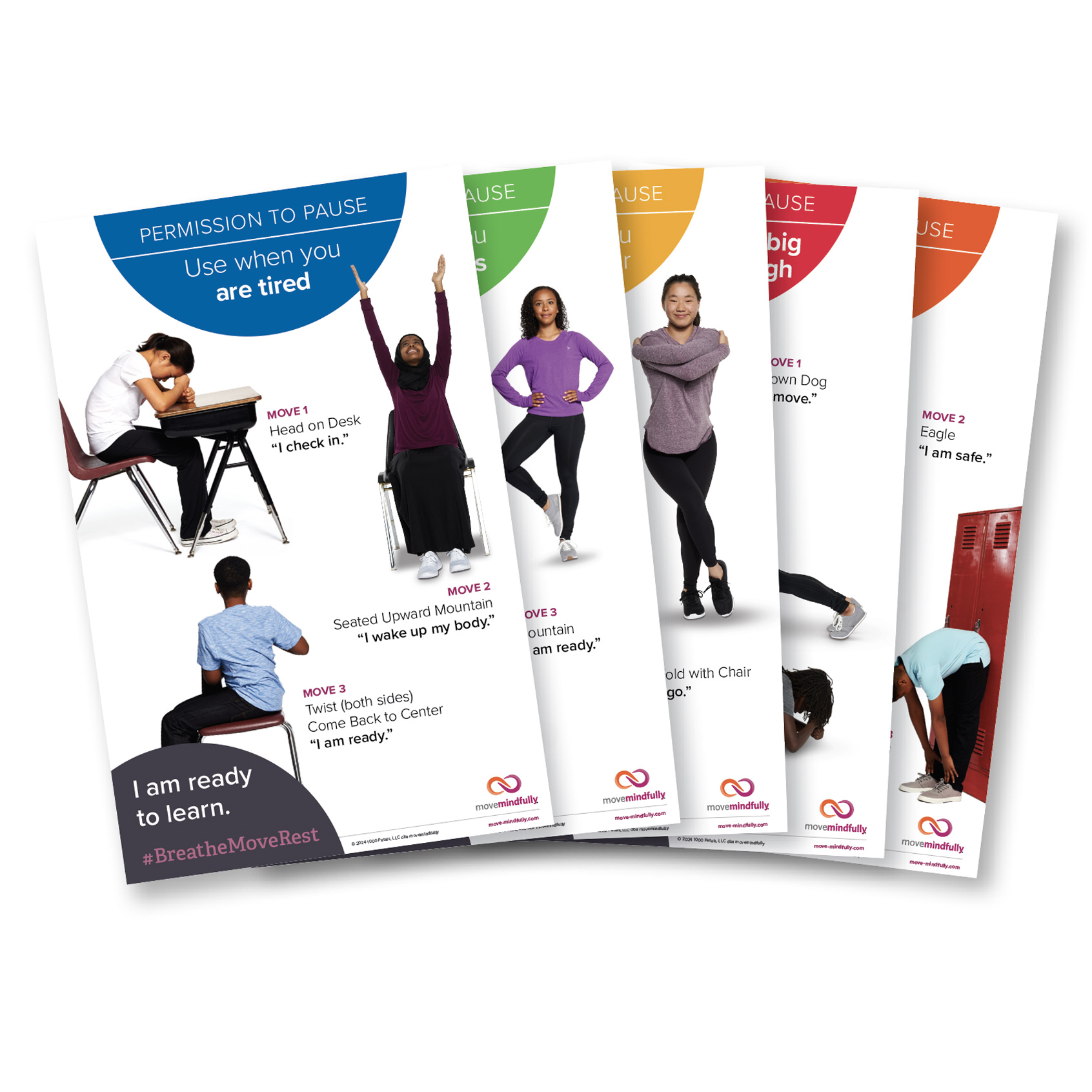 Permission to Pause Posters provide simple visuals to support social-emotional learning in educational, therapeutic, and home environments. Each poster includes three simple moves and affirming language that easily integrates with existing social–emotional frameworks, including Zones of Regulation, Second Step, Conscious Discipline, Harmony, Catalyst, and other SEL programs. Youth can choose a poster based on how they are feeling: Use When You are Tired; Use When You Need to Focus; Use When You are Anxious or Stressed; Use to Release Big Emotions or High Energy and our new poster; Use to Transition.